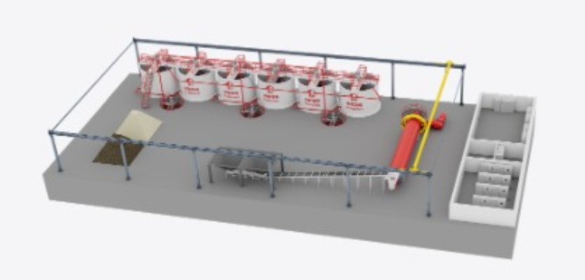 Sistem pencampuran dan batch: Ini termasuk silo untuk menyimpan bahan mentah, skala untuk berat badan yang tepat, dan pengadun kapasiti besar untuk mencipta buburan.